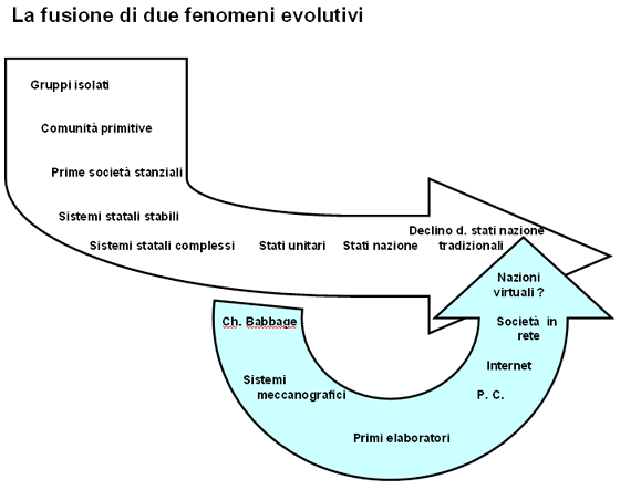 Le sorprese che ci riservano le nuove tecnologie informatiche e soprattutto Internet sono davvero senza fine (e senza limiti). Dopo avere invaso e rivoluzionato le comunicazioni, gli uffici, le fabbriche, le case di abitazione, gli ospedali, i sistemi di difesa e molti altri campi ancora, ora ci lasciano intravedere per un domani abbastanza prossimo e forse perfino già per oggi una delle più straordinarie evoluzioni sociali e politiche che sia dato di immaginare: la nascita delle nazioni virtuali.
